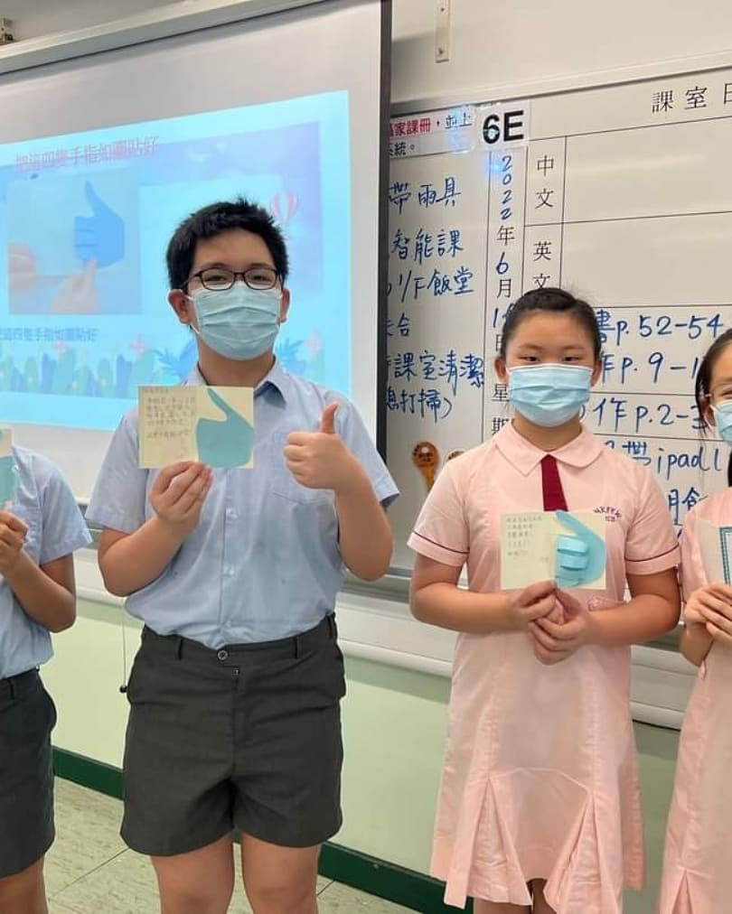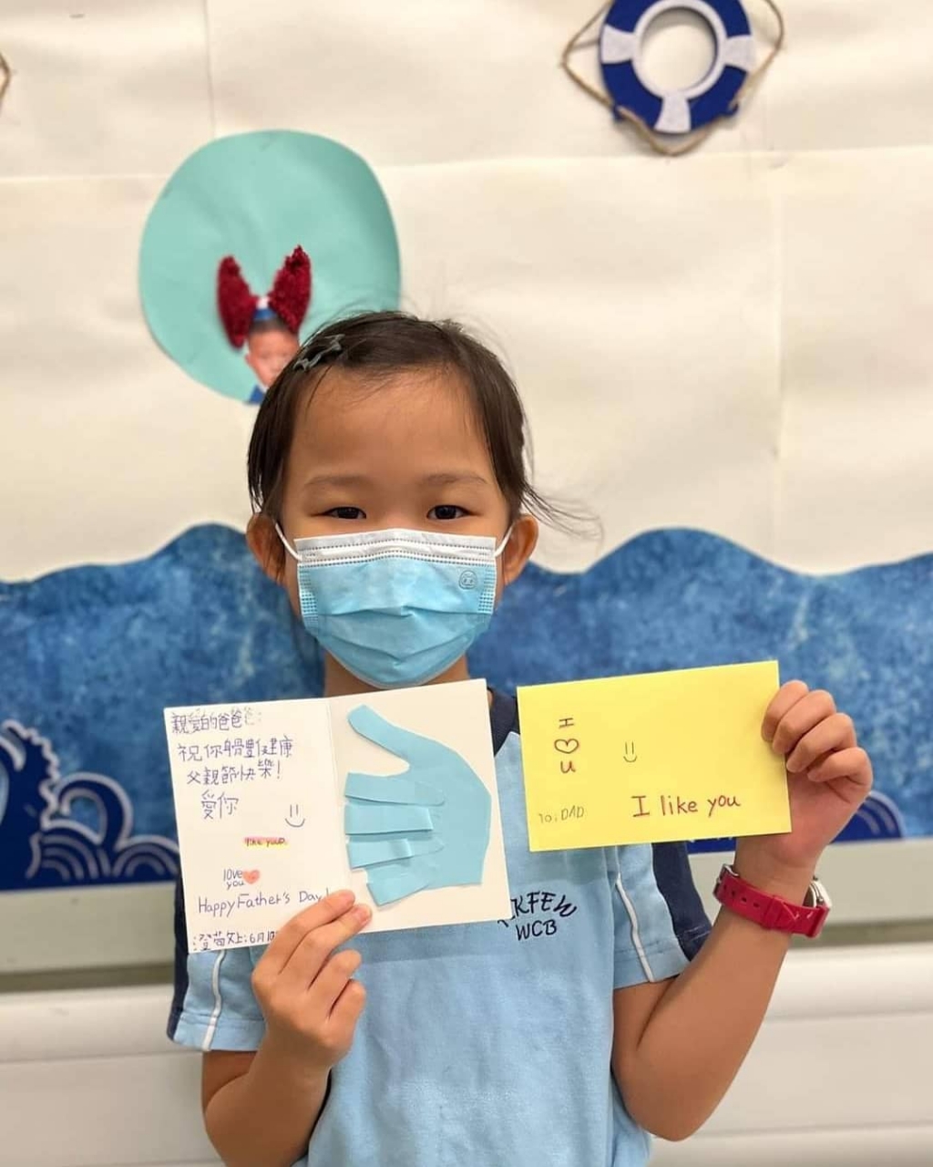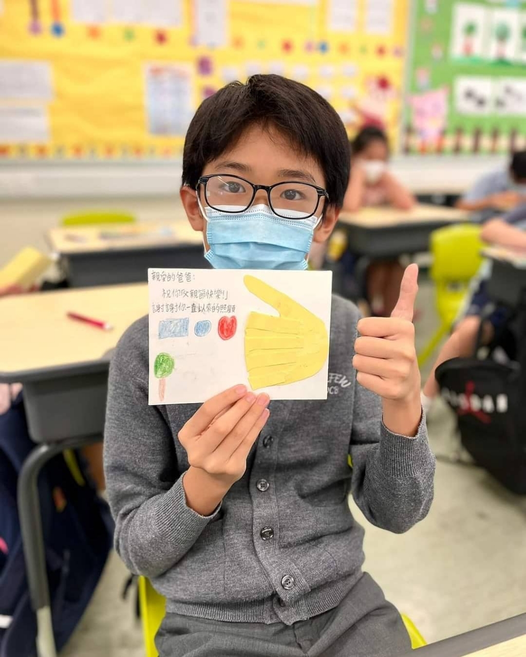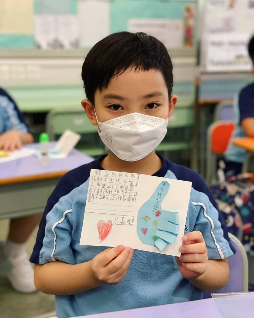 父親節將至,為了向父親表達心意,學校特意安排學生製作心意卡。學生除了在卡上寫上感恩之情,還特意用自己的手掌印出一個「Like」給父親,多謝父親一直為家庭默默付出。