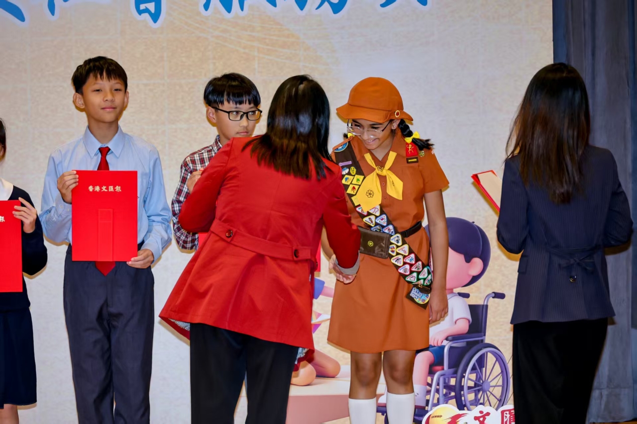 兩位同學不僅在學業上勤奮向上,更將熱誠與時間無私投入在社會服務上。身為學校升旗隊的隊長與旗手,他們每週都在莊嚴的儀式中負起升國旗的重任,那份對責任的堅守、對集體的榮譽感,早已內化為品格的一部分。正是這份使命感,驅使他們將同樣的熱忱與紀律,延伸至社區服務之中,以實際行動關懷社會,展現了香港青年知行一、心繫家國 的寶貴精神。