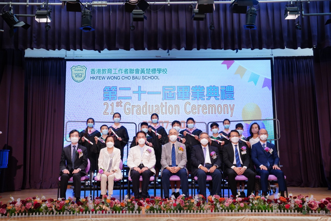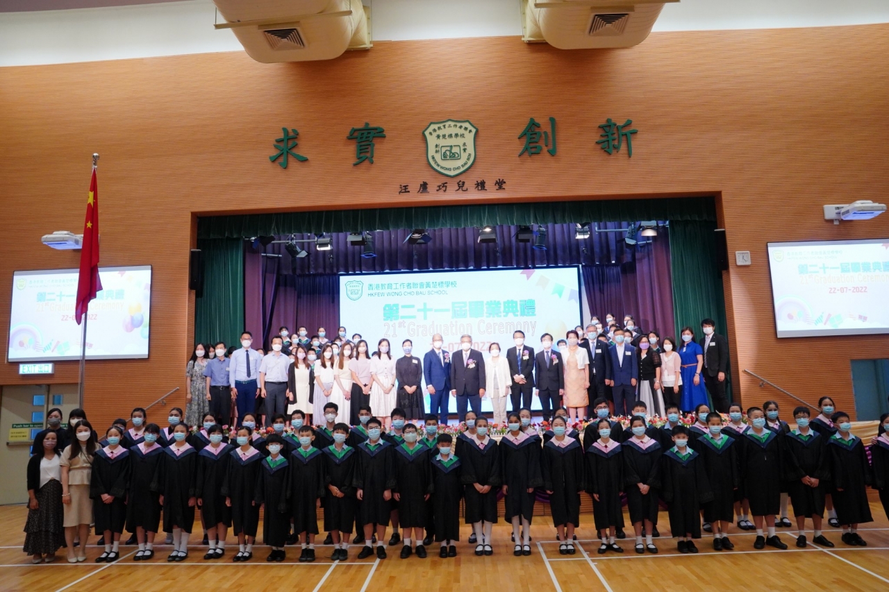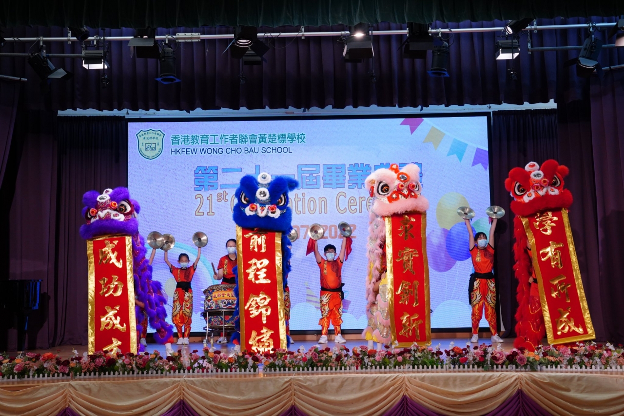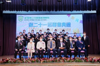 7月22日是本校第21屆畢業禮,本校很榮幸邀請了香港城市大學副校長陳漢夫教授為畢業生授憑。當天單輪車隊、舞獅隊及合唱團也為大家表演,舞獅隊以虎虎生威的步法祝願畢業同學「前程錦繡」、「求實創新」、「學有所成」及「成功成才」;合唱團更以迎接國家領導人習近平主席時所獻唱的「東方之珠」為畢業禮物,場面既温馨又感人。