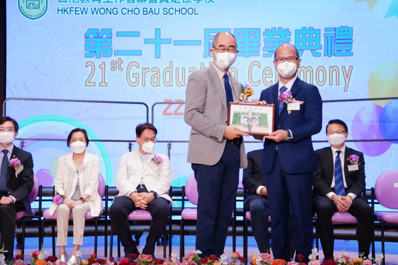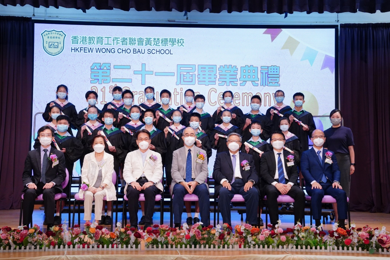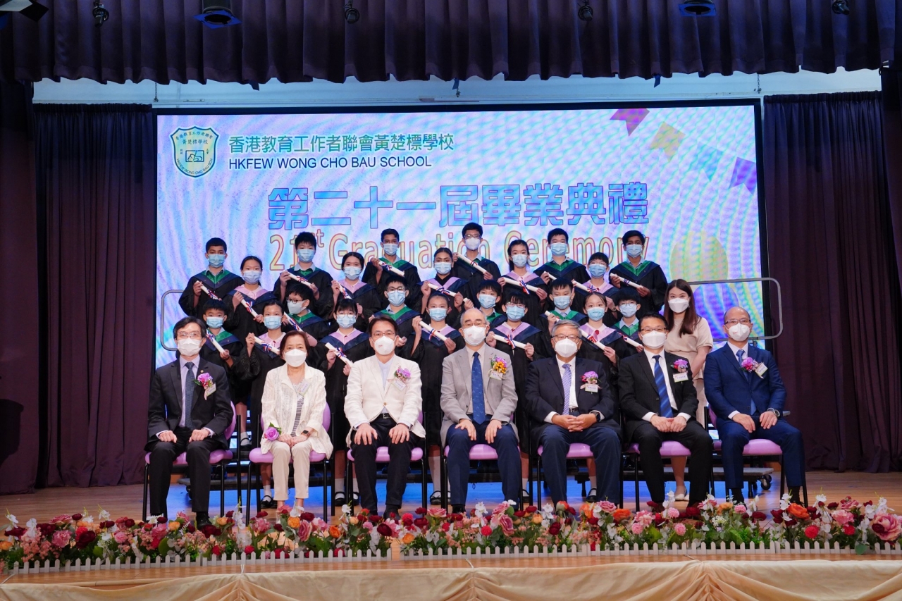 7月22日是本校第21屆畢業禮,本校很榮幸邀請了香港城市大學副校長陳漢夫教授為畢業生授憑。當天單輪車隊、舞獅隊及合唱團也為大家表演,舞獅隊以虎虎生威的步法祝願畢業同學「前程錦繡」、「求實創新」、「學有所成」及「成功成才」;合唱團更以迎接國家領導人習近平主席時所獻唱的「東方之珠」為畢業禮物,場面既温馨又感人。