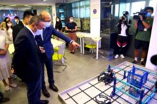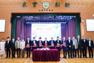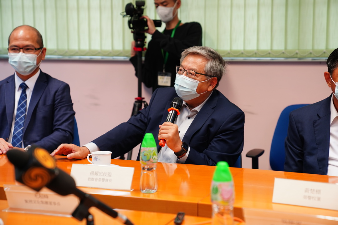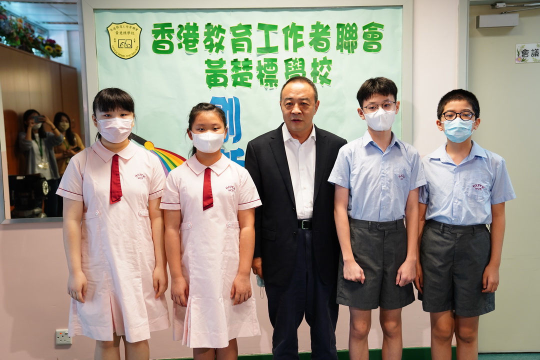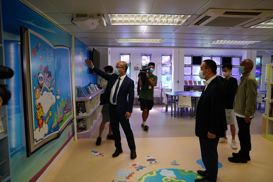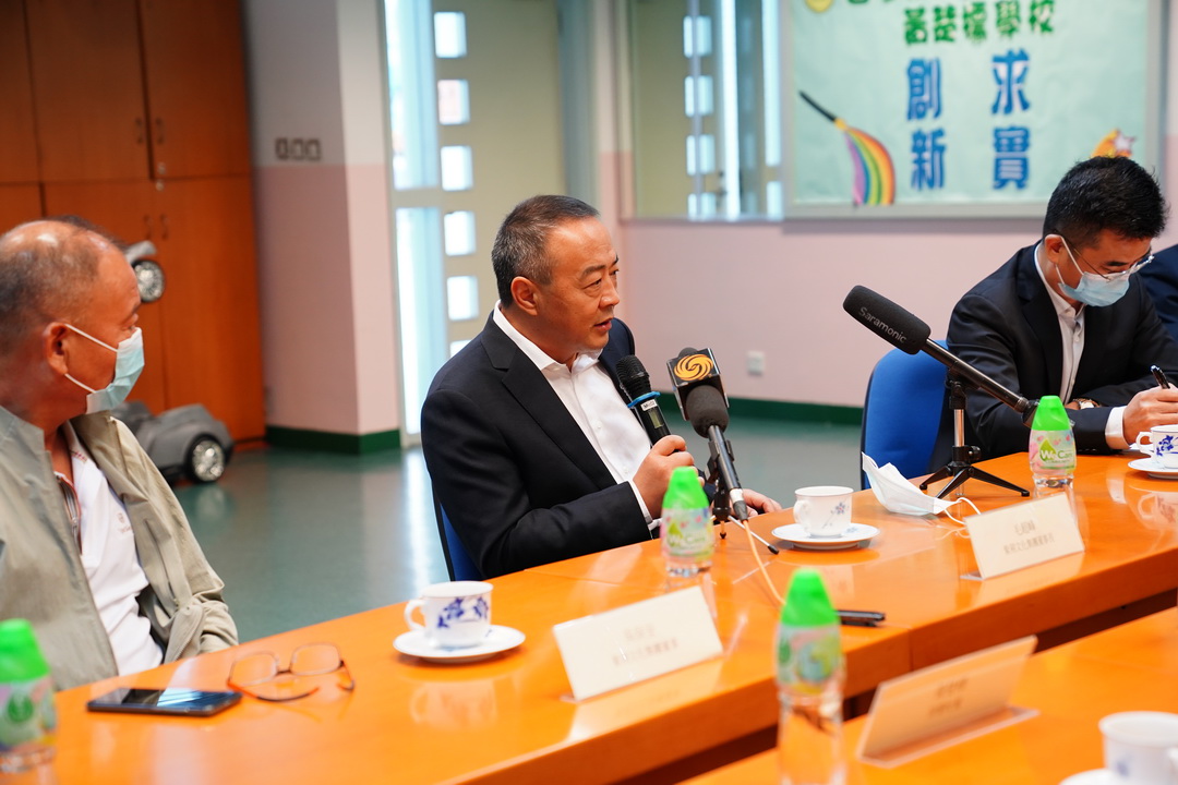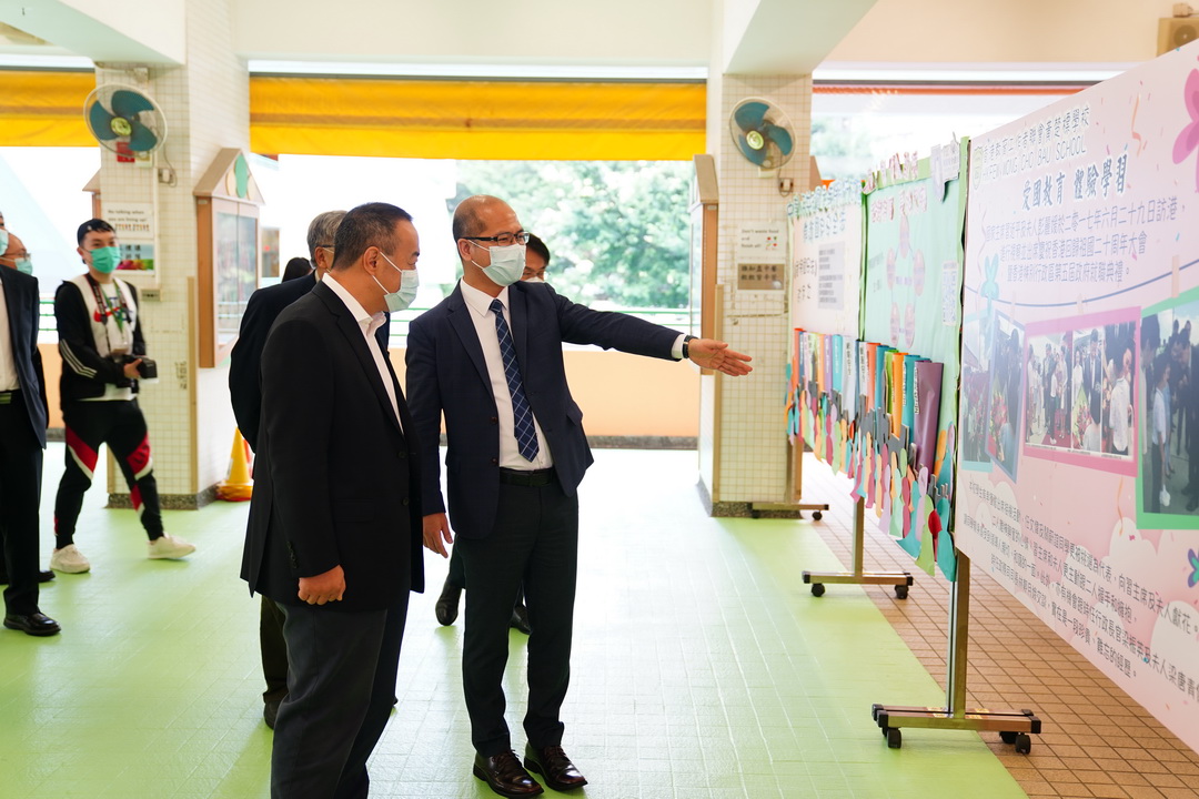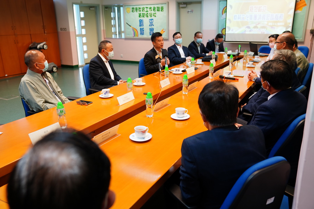 紫荊文化集團毛超峰董事長、聯合出版集團傅偉中董事長、教聯會領導、本校校監及校董等領導於十一月二日蒞臨學校,參觀校園內的最新設施及科創設備,並了解本校推行國民教育的現況。