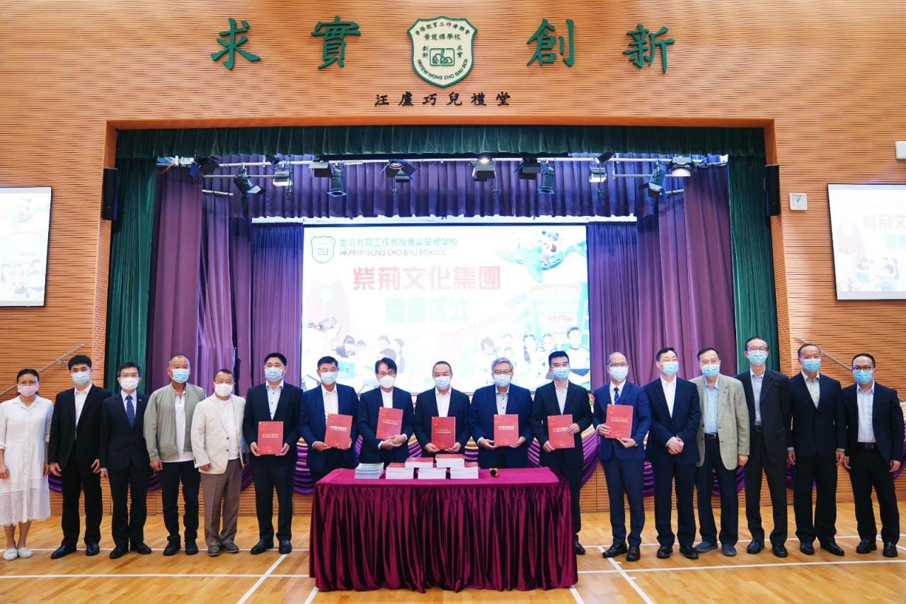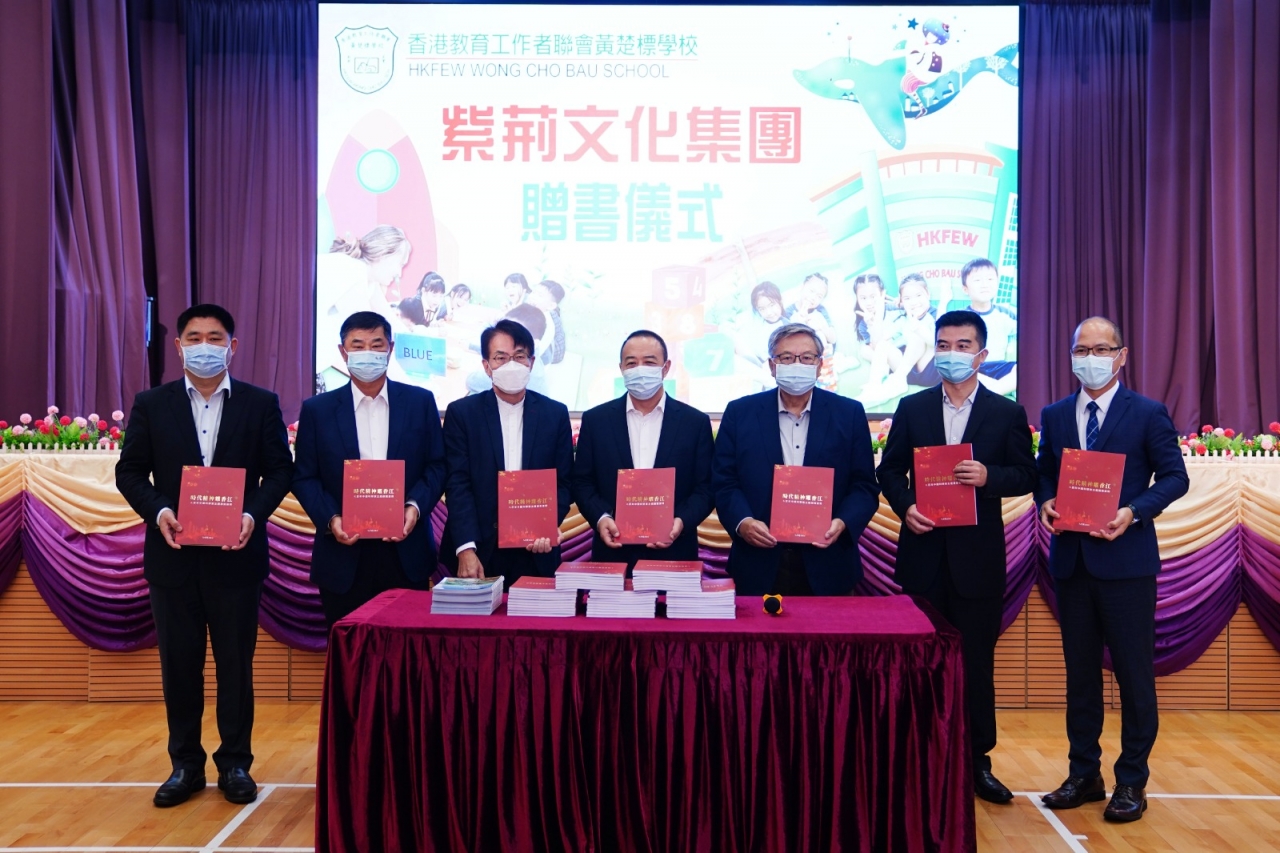 紫荊文化集團領導讚揚學校用心推行國民教育,特送贈書籍《百年歷史、當代中國》及《時代精神耀香江之百年中國科學家主題展覽畫冊》予學校,以助師生深入了解國家發展,提高對國家民族的認識。