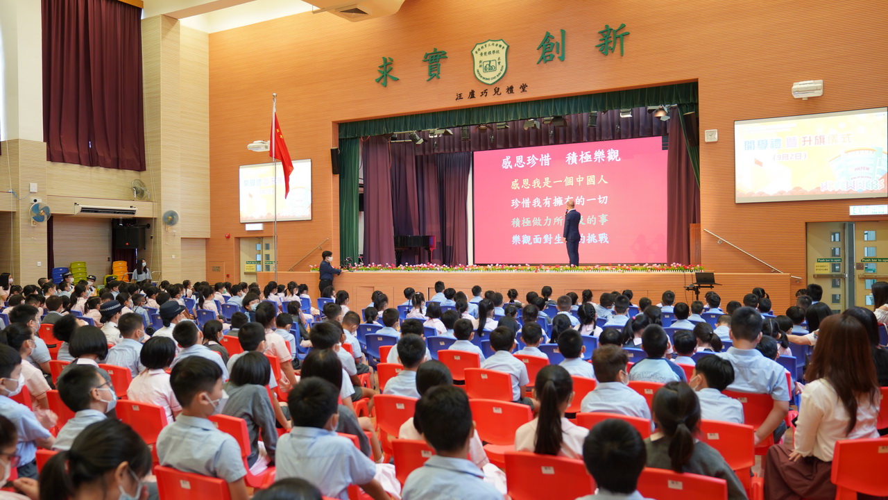 本校今早順利舉行本年度開學禮,師生齊聚禮堂進行升旗禮。同學們精神抖擻,特別是一年級新生表現得既興奮又緊張。校長鼓勵同學們以感恩之心珍惜所有,積極樂觀面對未來的挑戰。