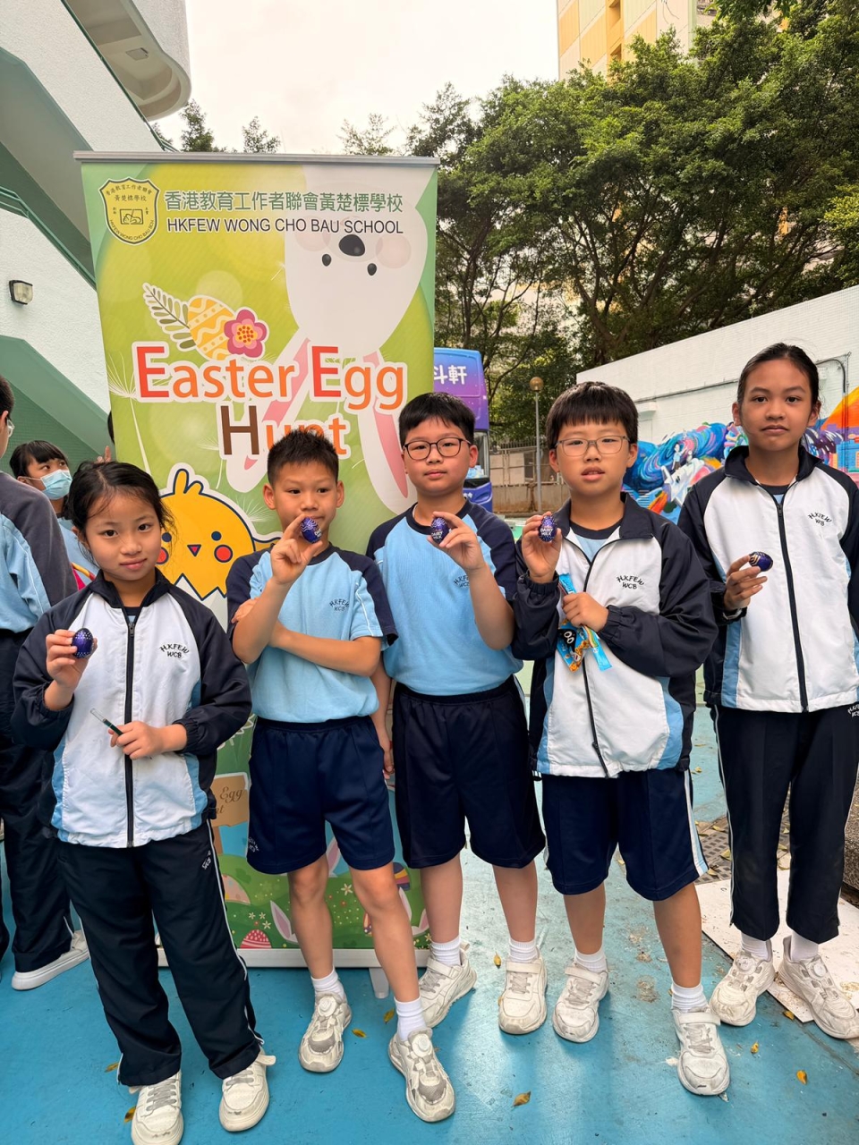 為了慶祝復活節,並讓同學們更深入了解這個節日的文化背景,本校英文科於3月27日舉辦了一連串精彩活動。小息及午息時段,校園內舉行了尋蛋活動,色彩繽紛的膠片復活蛋掛在校園各處,同學們需要仔細尋找,並以英語回答問題。完成任務後,他們獲贈朱古力蛋作為獎勵。午膳時段,同學們觀看了有關復活節故事的影片,大家都看得十分投入。整個活動洋溢著歡樂的氣氛,師生都樂在其中。