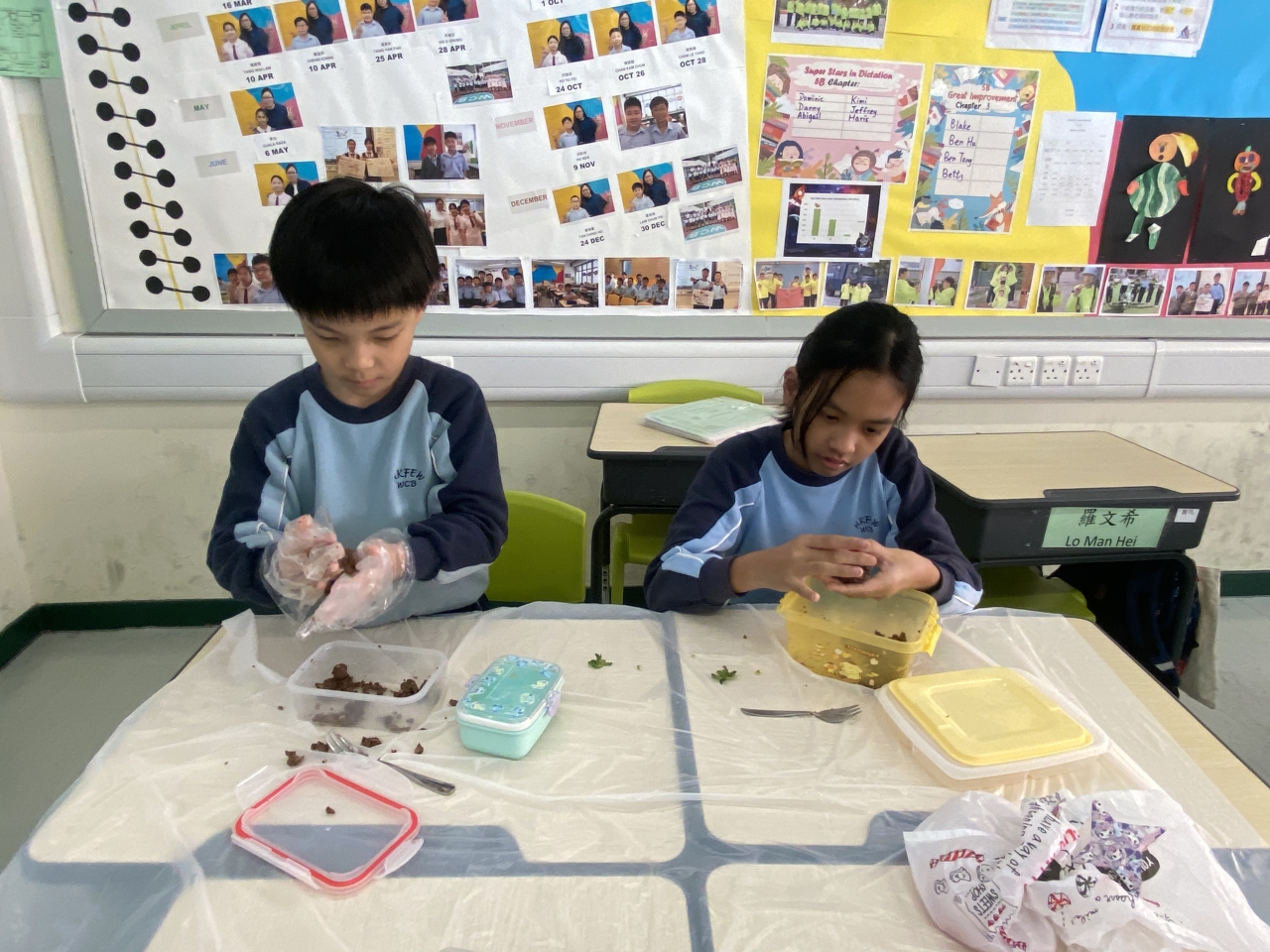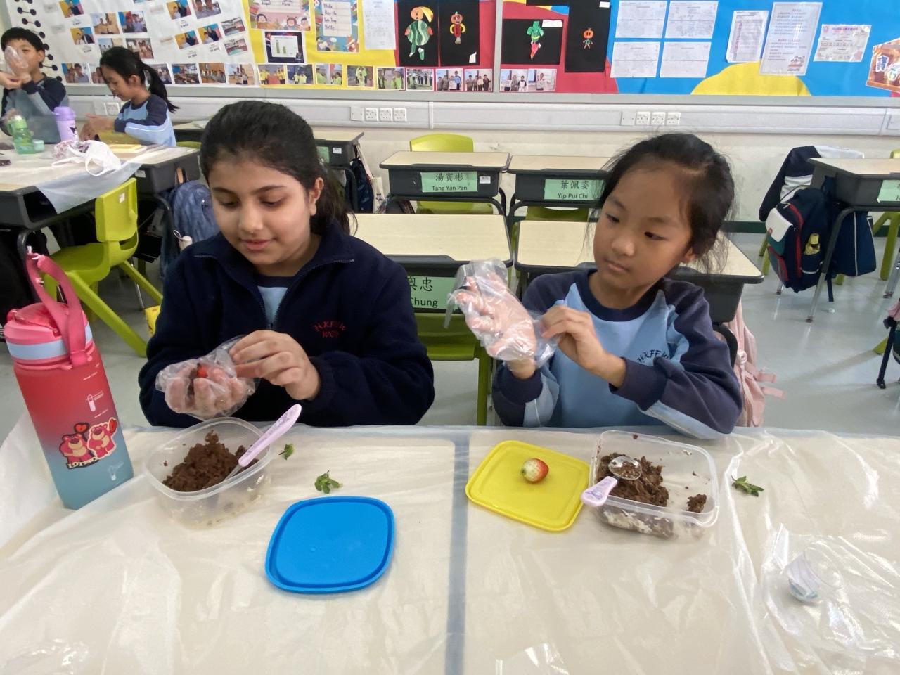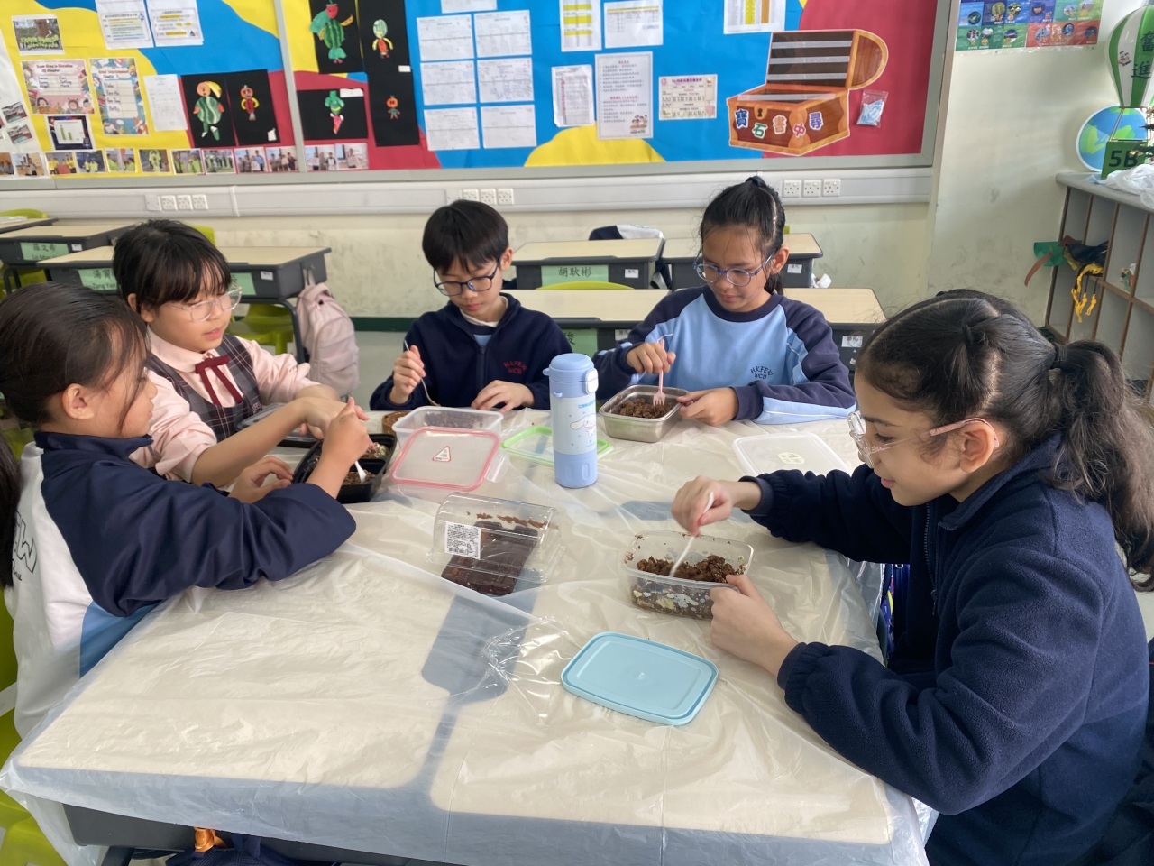 閱讀食譜後,學生們按照步驟合力製作蛋糕。在製作蛋糕的過程中,不但提升了他們的英語閱讀能力,還讓他們學習到不少與烹飪相關的新詞彙。