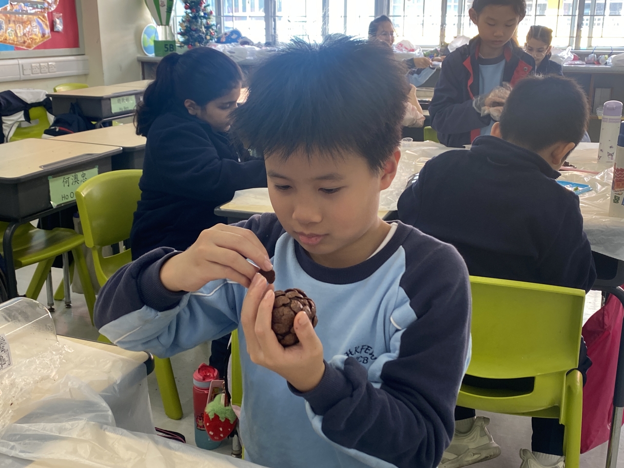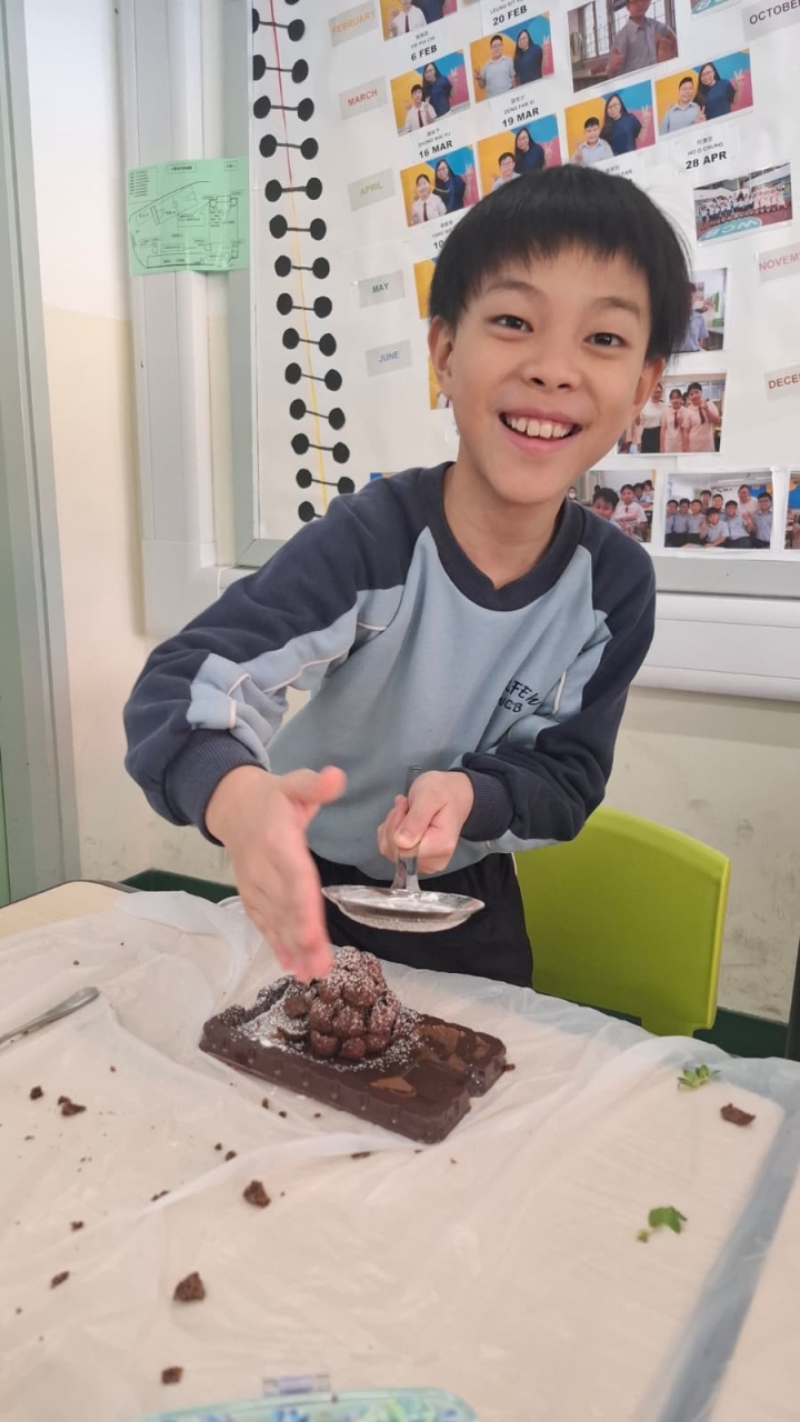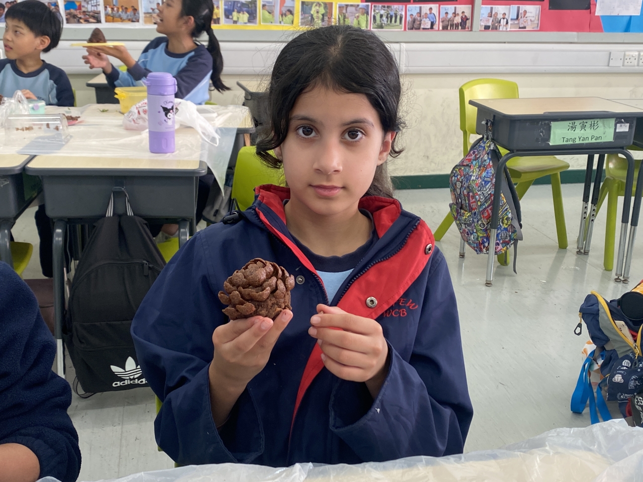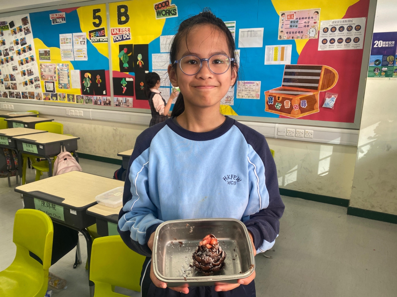 在活動結束時,每位學生都很喜愛自己製作的松果蛋糕,這是對他們認真製作的最佳獎勵。最後,學生們在這次活動中能一起成功創造出美味的食物,都感到十分開心。