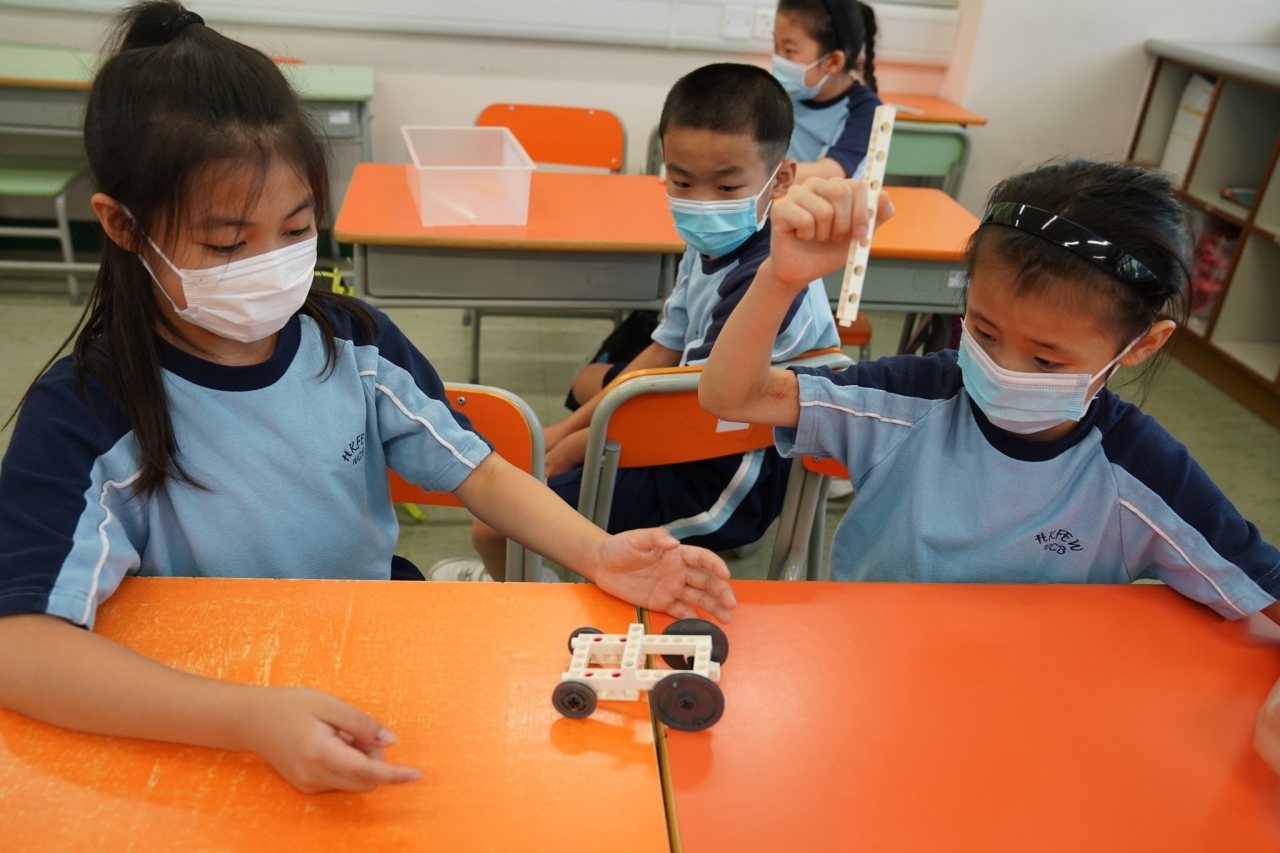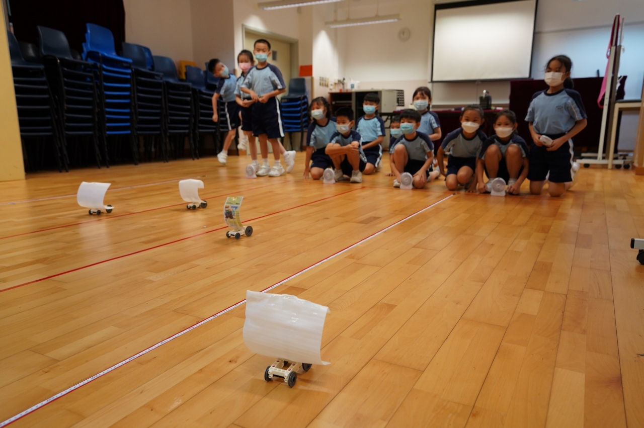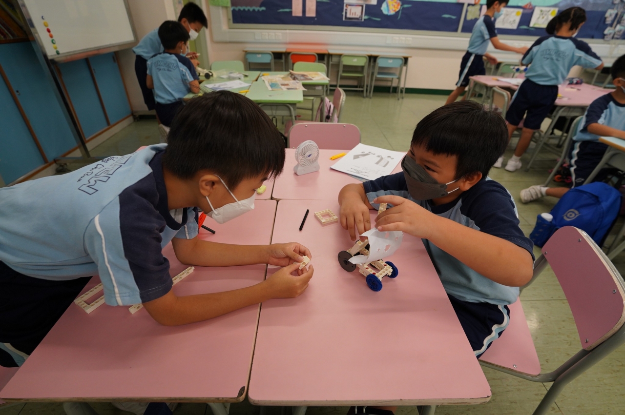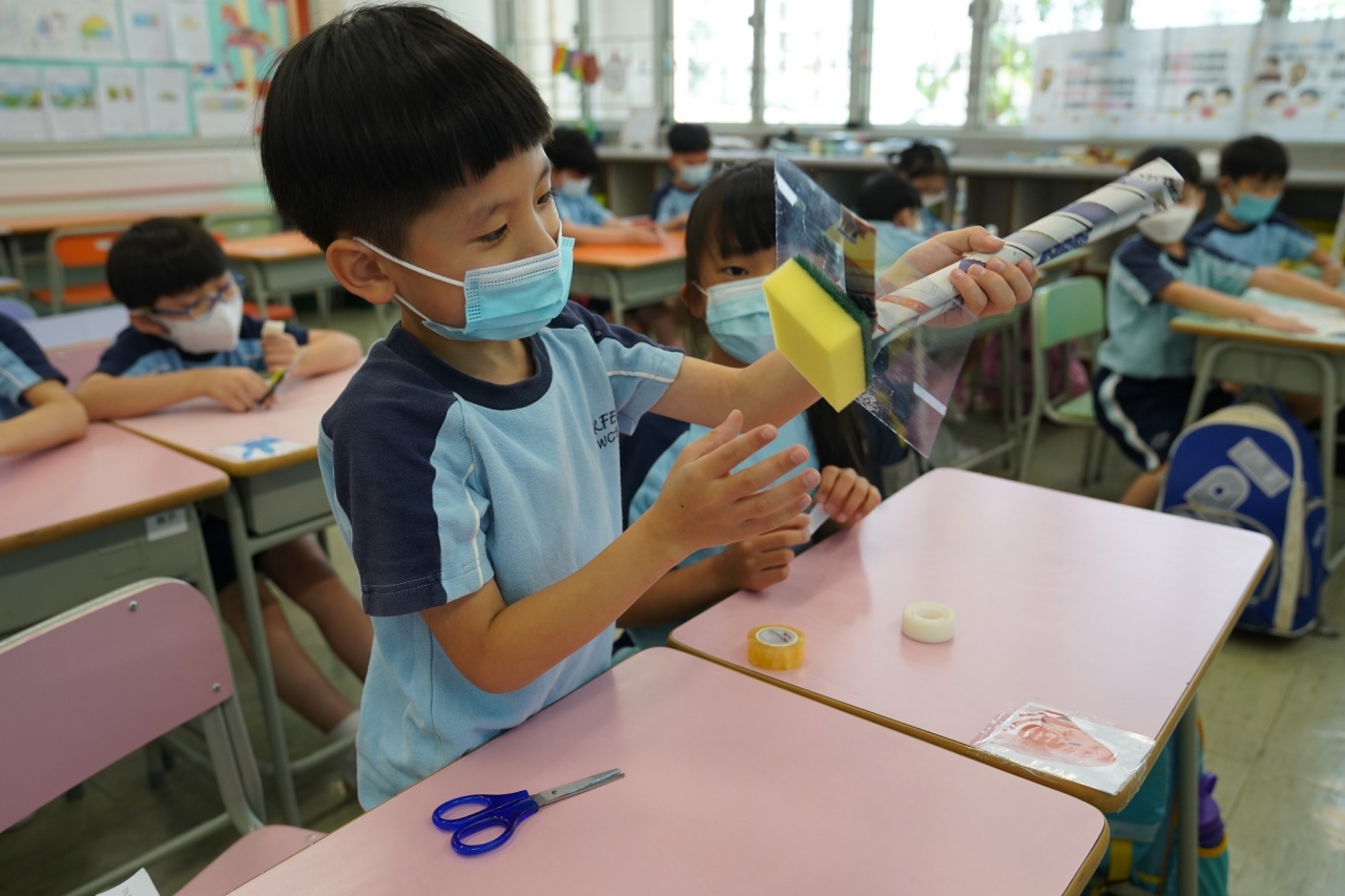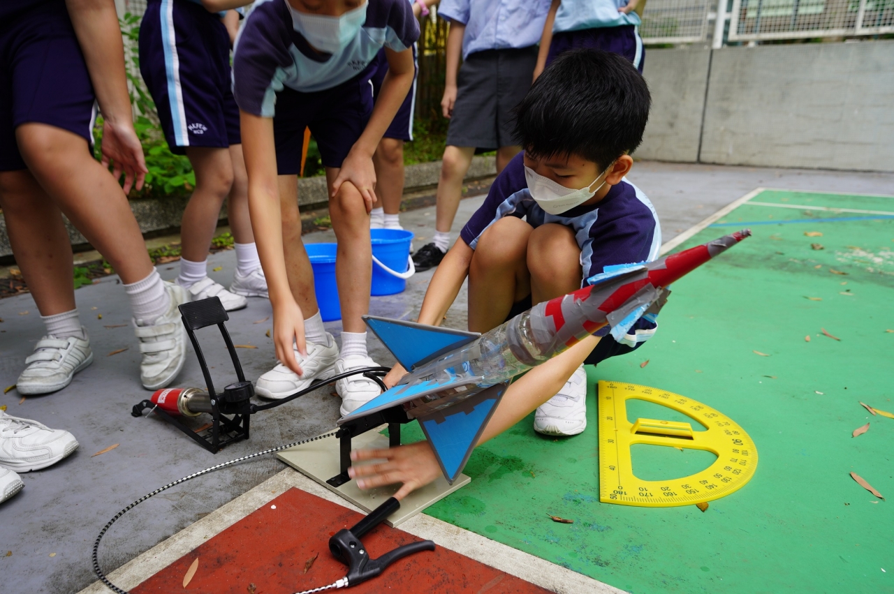 「STEAM科探日」已於8月2至3日進行,讓學生運用科學(S)、科技(T) 、工程(E) 、藝術(A)和數學(M)的知識和技能,提升他們對STEAM的興趣和研習能力。一至五年級分別進行不同的專題科探活動,分別是高效吸水拖把、風帆玩具車、雞蛋降落傘、機甲大師和水火箭。活動中,學生透過測試、改良、再測試的步驟,深化所學的知識和技能,並透過小組協作,提升他們的解難和溝通能力。