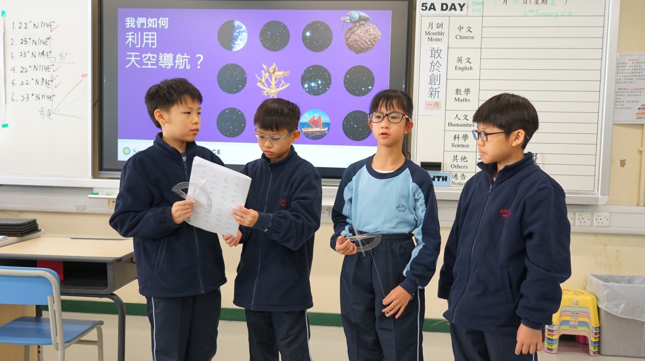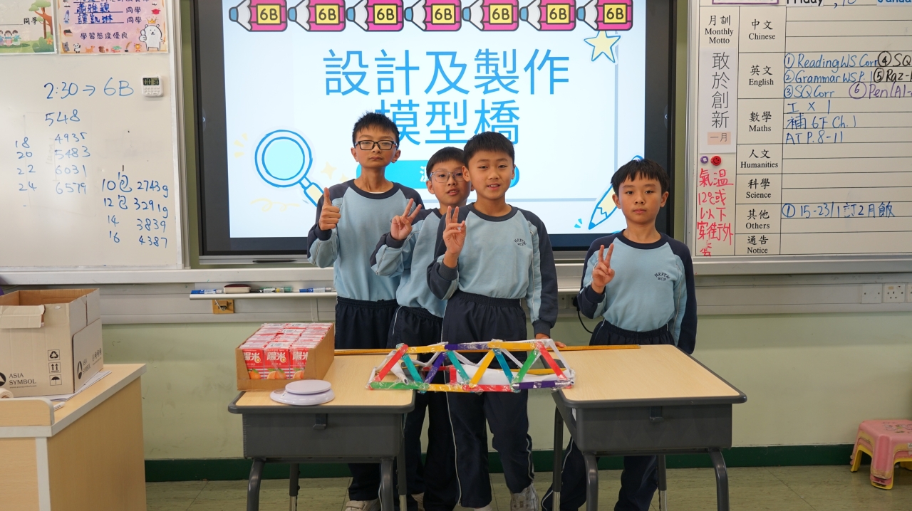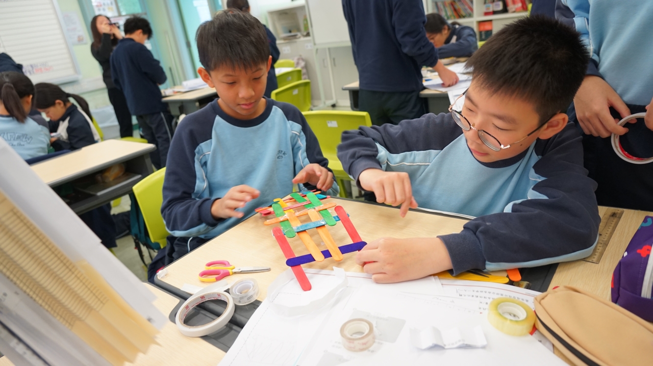 「STEAM科探日」於1月15至16日進行,讓學生運用科學(S)、科技(T) 、工程(E)、藝術(A)和數學(M)的知識和技能,提升他們對STEAM的興趣和研習能力。學生除了到行走的STEAM互動教室「北斗軒」進行創新學習體驗,包括飛行模擬駕駛區、VR探索艙等,一至六年級還分別進行不同的專題科探活動(紙飛機、gigo風帆玩具車、水和光的探究、根據物料的特性來識別它們、利用天空導航和橋的興建)。活動中,學生透過測試、改良、再測試的步驟,深化所學的知識和技能,並透過小組協作,發展他們的解難和溝通能力。
